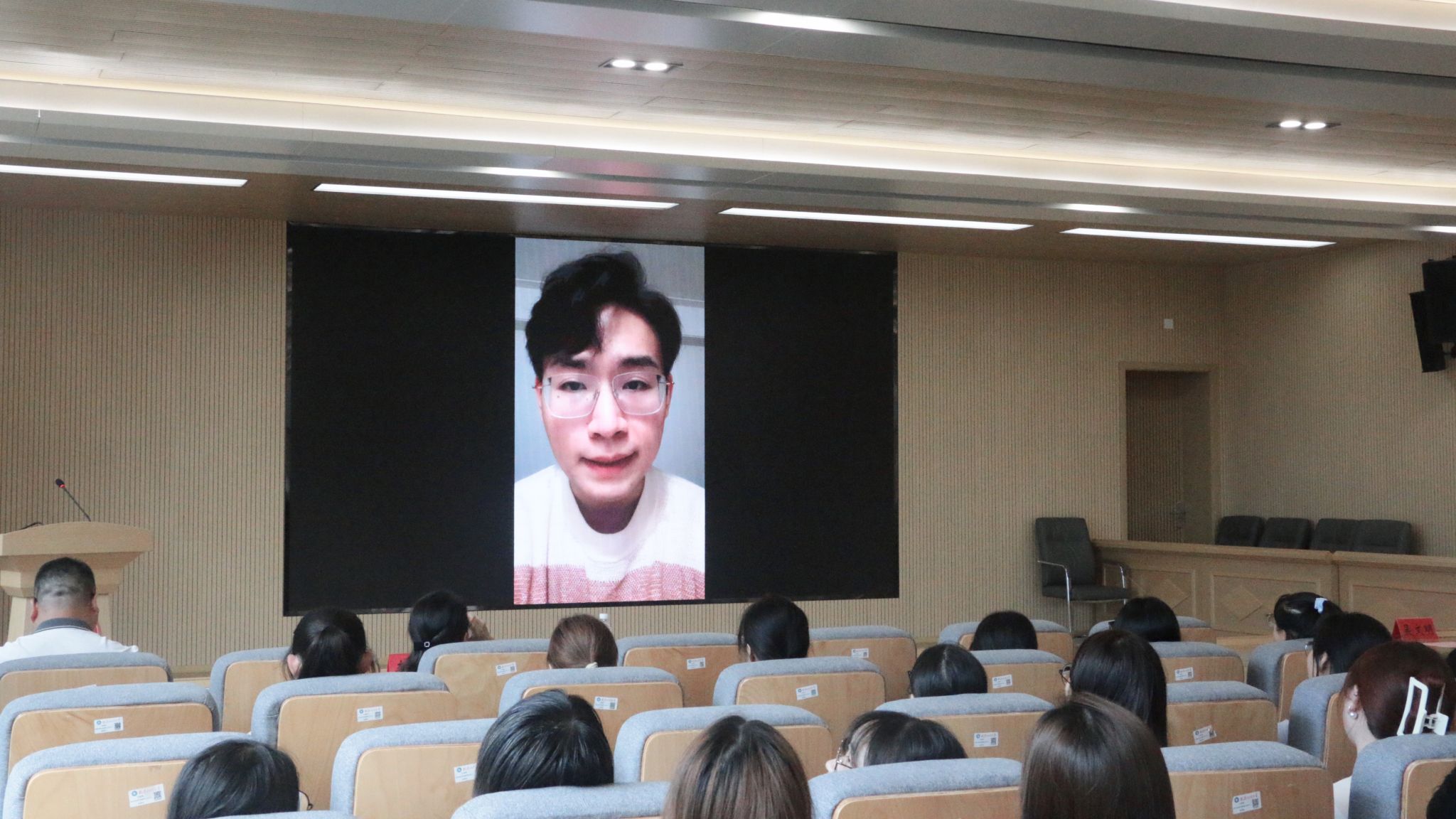 林昊通過視頻連線分享了自己的專業成長故事。他笑稱曾有“中文、英文、德語考試混雜折磨大腦”的感受,但也坦言,處理文化差異的過程“打開了大腦”,使他逐漸形成全局視野。結合就業與創業經歷,他建議新生:“無論你做什么、去哪里,一定要走出去,用世界的語言來體現自己——這可能是一生受益的事情�!�